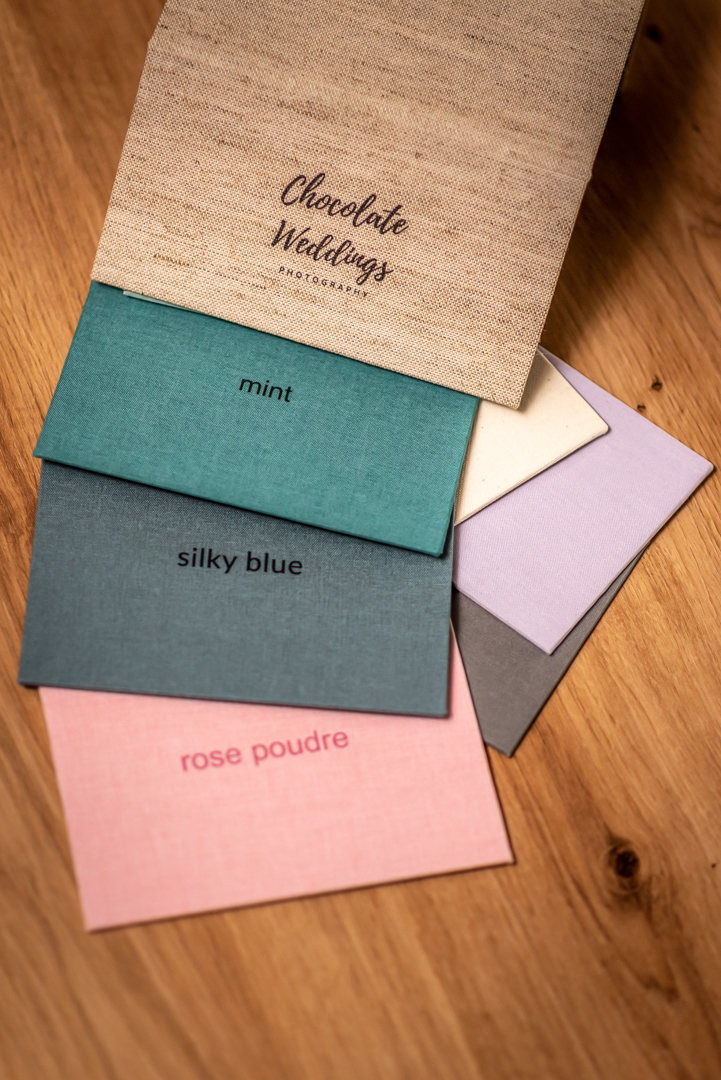 Niže u galeriji možete naći ponudu tkanina za presvlačenje korica booka. Svi “Chocolate Weddings” bookovi isporučuju se u kutijama. Kutije bookova presvlače se identičnim tkaninama kao i book.